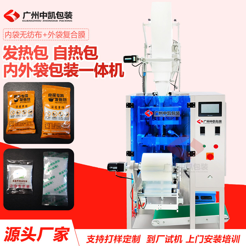 發(fā)熱包內(nèi)外袋包裝一體機(jī)一臺(tái)包裝機(jī)就可以實(shí)現(xiàn)發(fā)熱包無(wú)紡布內(nèi)袋包裝和塑料膜外袋包裝,占地面積小,包裝速度也提高了2倍,省人工,省成本。...