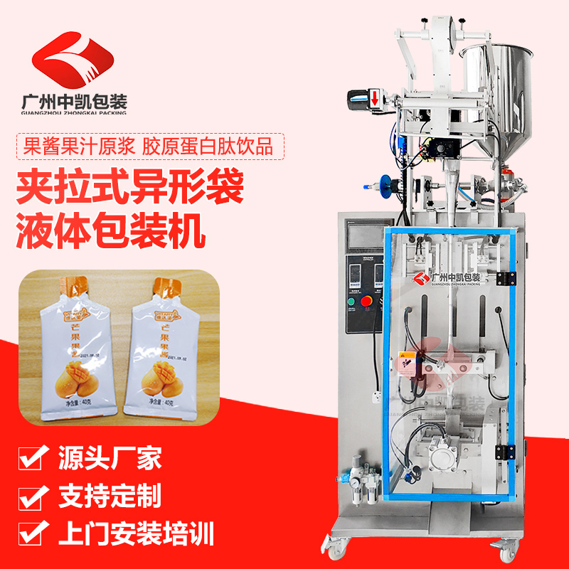 中凱包裝側(cè)封異形袋液體包裝機適用于食品、化工、護膚品、農(nóng)業(yè)產(chǎn)品中的液體、膏體、醬料等物料,如:能量膠、酵素飲、口服液、沙棘原漿、刺梨汁、營養(yǎng)飲品、枸杞原漿...