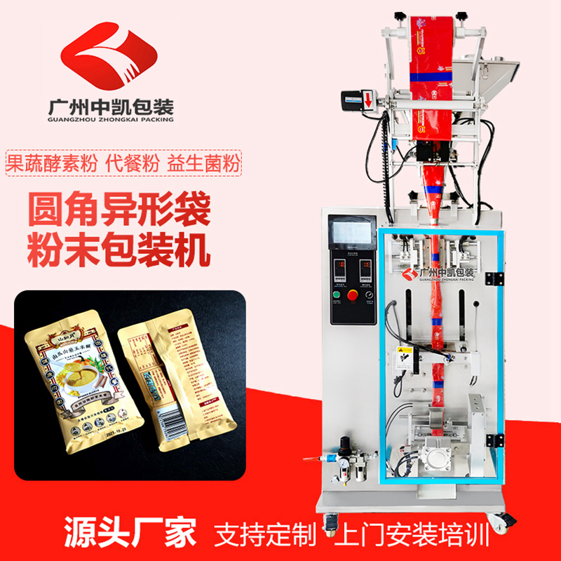 廣州中凱包裝長條圓角粉末包裝機(jī)適合包裝各種粉末粉劑產(chǎn)品,如益生菌,咖啡粉,奶茶粉,孢子粉,中藥粉,茶粉等等,螺桿計(jì)量,長條圓角袋型,圓角袋外觀美觀,可以提...